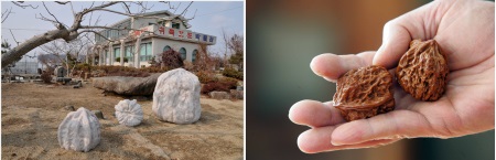 ▶기획전시관 : 일반 식용호도나 가래추자와는 전혀 다른 선현들의 오랜 역사와 경험의 축척에서 생긴 손 운동용 · 건강용 · 지압용 호도(두)로 주름과 골이 깊고 내용물이 없기 때문에 표피가 단단하여 반영구적으로 활용한다. 특히 2011년에 생산된 6각 흥화라고 명명한 호도는 두알 한 벌에 1억이 넘는 학계 및 언론의 평가로 세계적 천연기념물이라고 볼 수 있다.