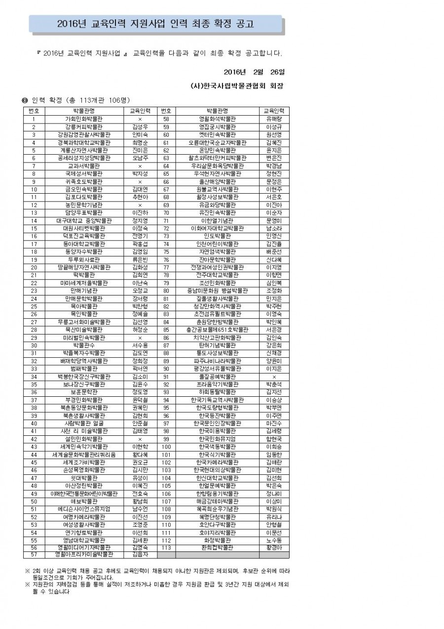 2016년 교육인력 지원사업 인력 최종 확정 공고 페이지 정보 작성자 관리자 작성일16-02-26 19:54 조회39,891회 댓글0건 관련링크 이전글 다음글 목록 본문 댓글목록 등록된 댓글이 없습니다. 이전글 다음글 목록