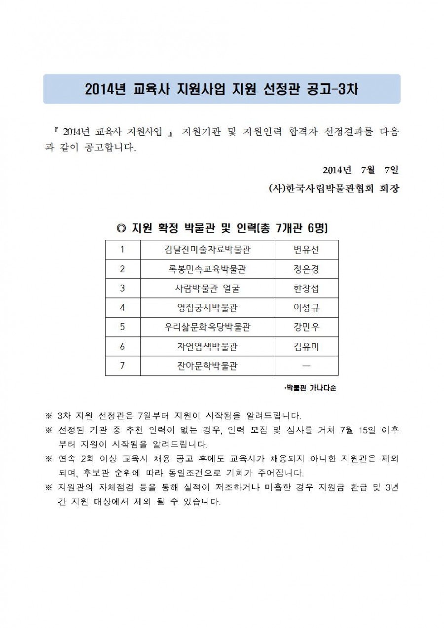 『 2014년 교육사 지원사업 』 지원기관 선정 공고 - 3차 페이지 정보 작성자 관리자 작성일14-07-07 14:29 조회37,193회 댓글0건 관련링크 이전글 다음글 목록 본문 댓글목록 등록된 댓글이 없습니다. 이전글 다음글 목록