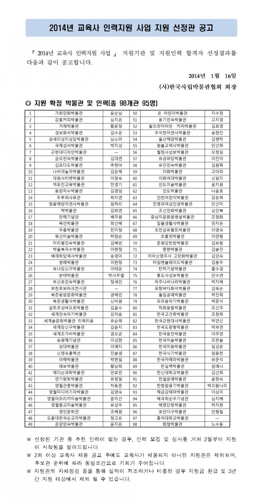 『 2014년 교육사 인력 지원사업 』 지원기관 선정 공고 페이지 정보 작성자 관리자 작성일14-01-16 14:05 조회34,848회 댓글0건 관련링크 이전글 다음글 목록 본문 댓글목록 등록된 댓글이 없습니다. 이전글 다음글 목록
