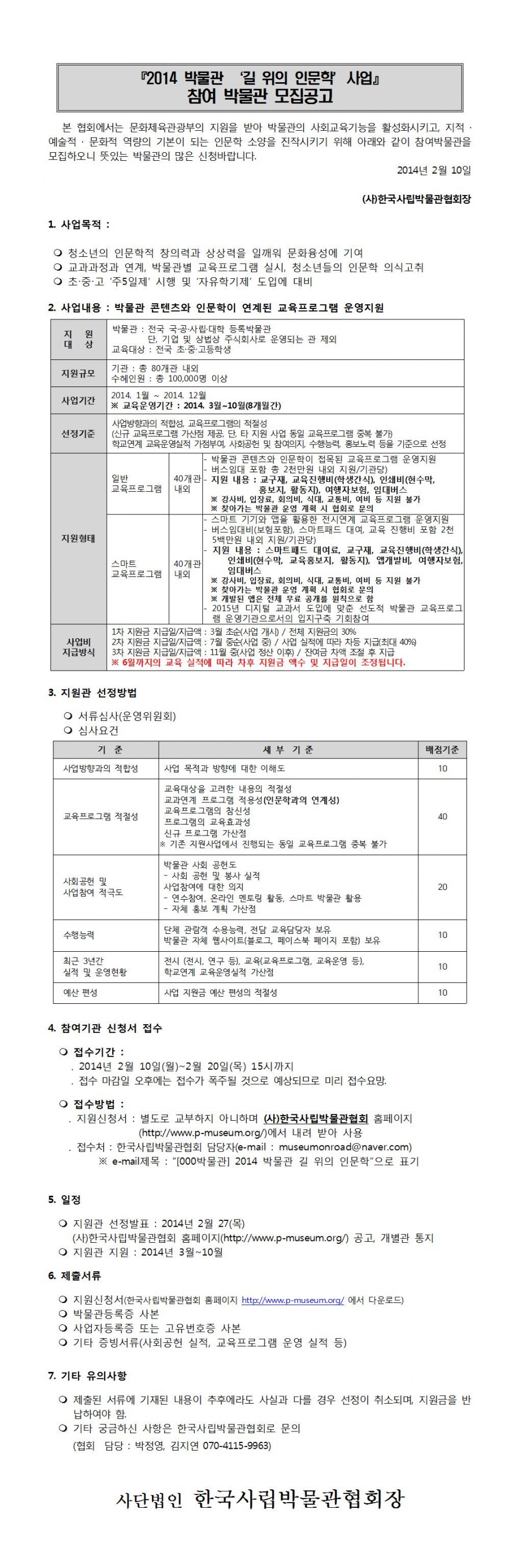 [인문학] 『2014 박물관 ‘길 위의 인문학’사업』참여 박물관 모집공고