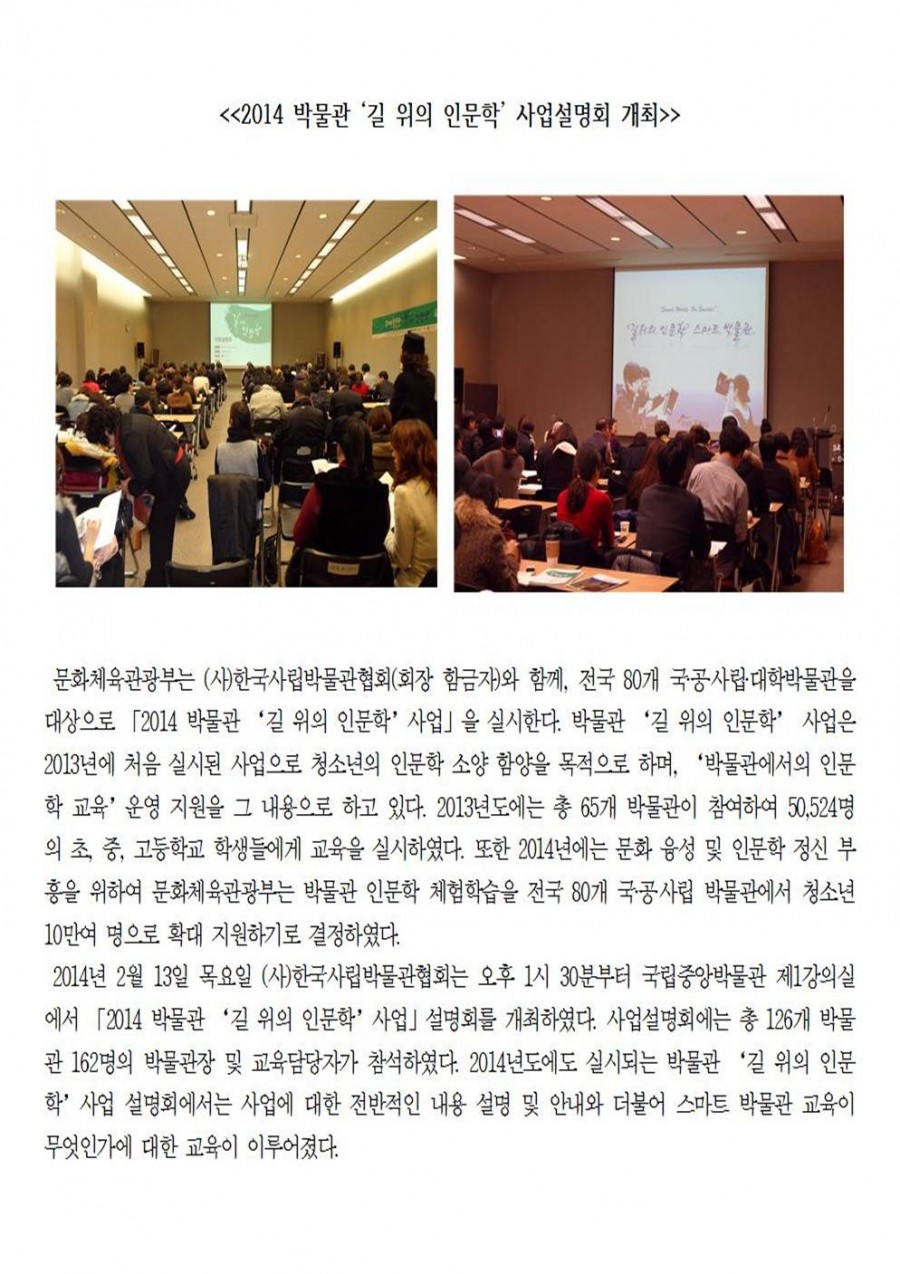 [인문학] 2014 박물관 길 위의 인문학 사업설명회 개최(자료집 첨부)