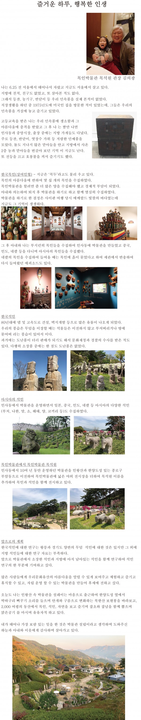[목인박물관 목석원] 즐거운 하루, 행복한 인생 페이지 정보 작성자 관리자 작성일19-11-25 13:45 조회15,185회 댓글0건 관련링크 이전글 다음글 목록 본문 댓글목록 등록된 댓글이 없습니다. 이전글 다음글 목록